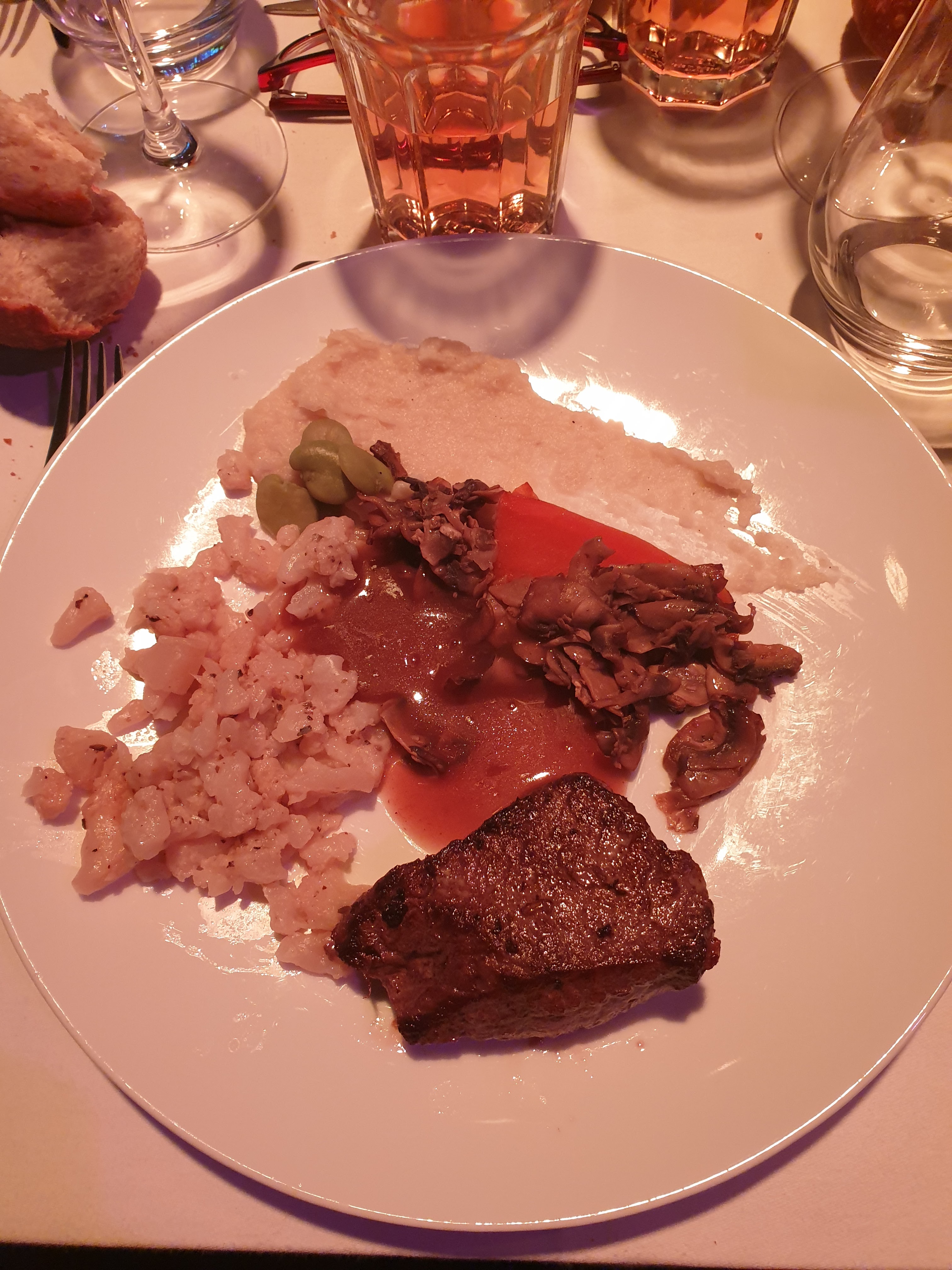 Posté le 25/02/2024 à 15:26"Lieu sympathique avec ambiance agréable et artistes de qualités Concernant le repas, nous ne pouvons en dire autant. L'entrée : une moitié de poireau filandreux avec trois minuscules morceaux de poissons. Plat : une paupiette de viande dure accompagnėe de trois morceaux de pommes de terres avec une ficelle très difficile à retirer. En ce qui concerne la salade et le fromage, là c'est le pompon, de la terre dans mon assiette ! Après réclamation auprès du responsable de rang. Réponse de celui-ci: C'est normal la salade vient de la terre, pas de chance sur 200 personnes vous êtes la seule ! Aucun changement d'assiette ni de geste commercial ☹ Quand au dessert café, insipide. Un conseil, prenez la formule sans le repas !"