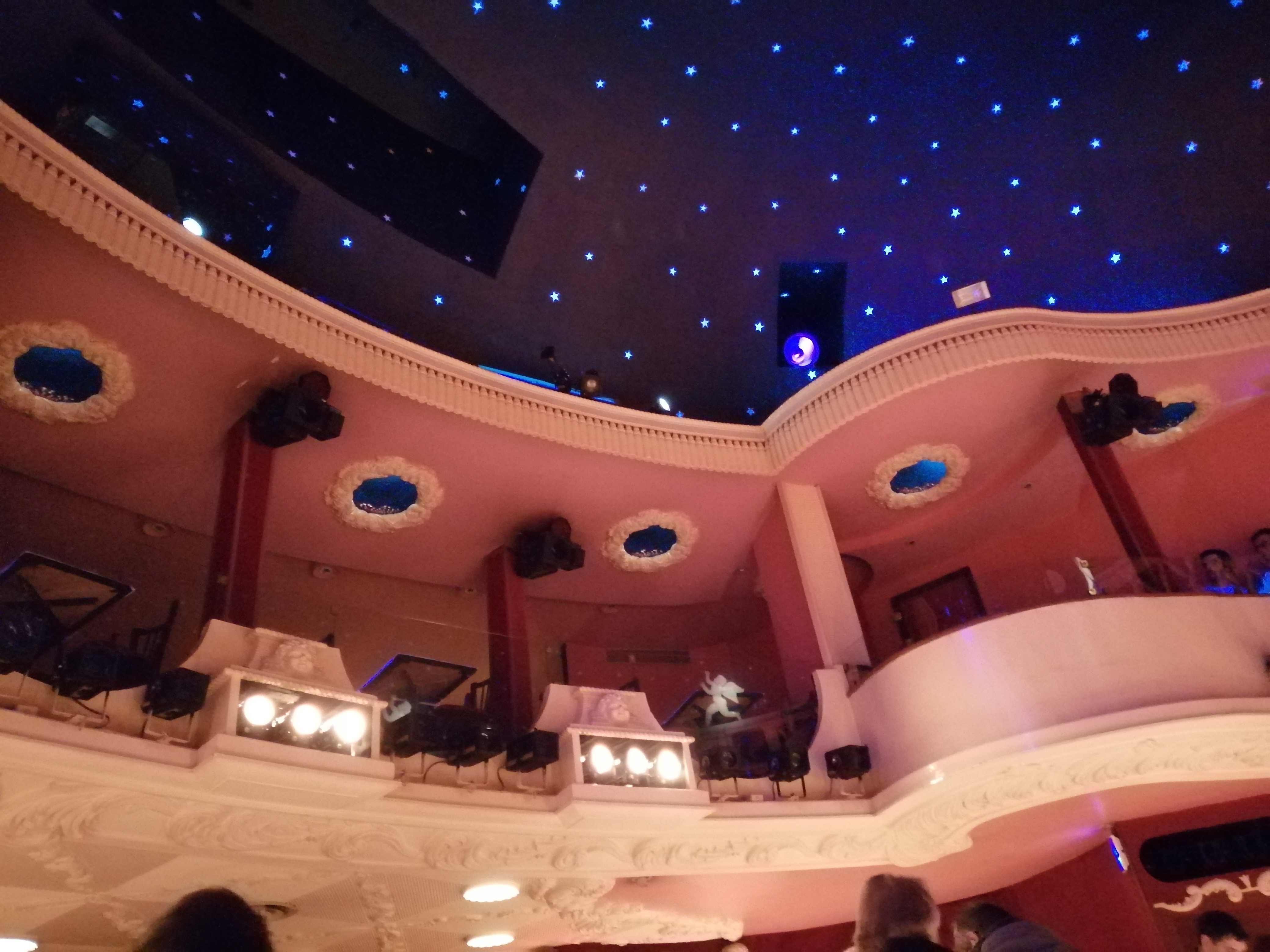 Posté le 26/06/2014 à 16:43"Belle salle assez grande, mais, cosy, intime, avec des petites lampes à chaque table, des anges au plafond et une voûte étoilée. La scène est assez grande. Le + : on peut consommer des boissons pendant le spectacle."