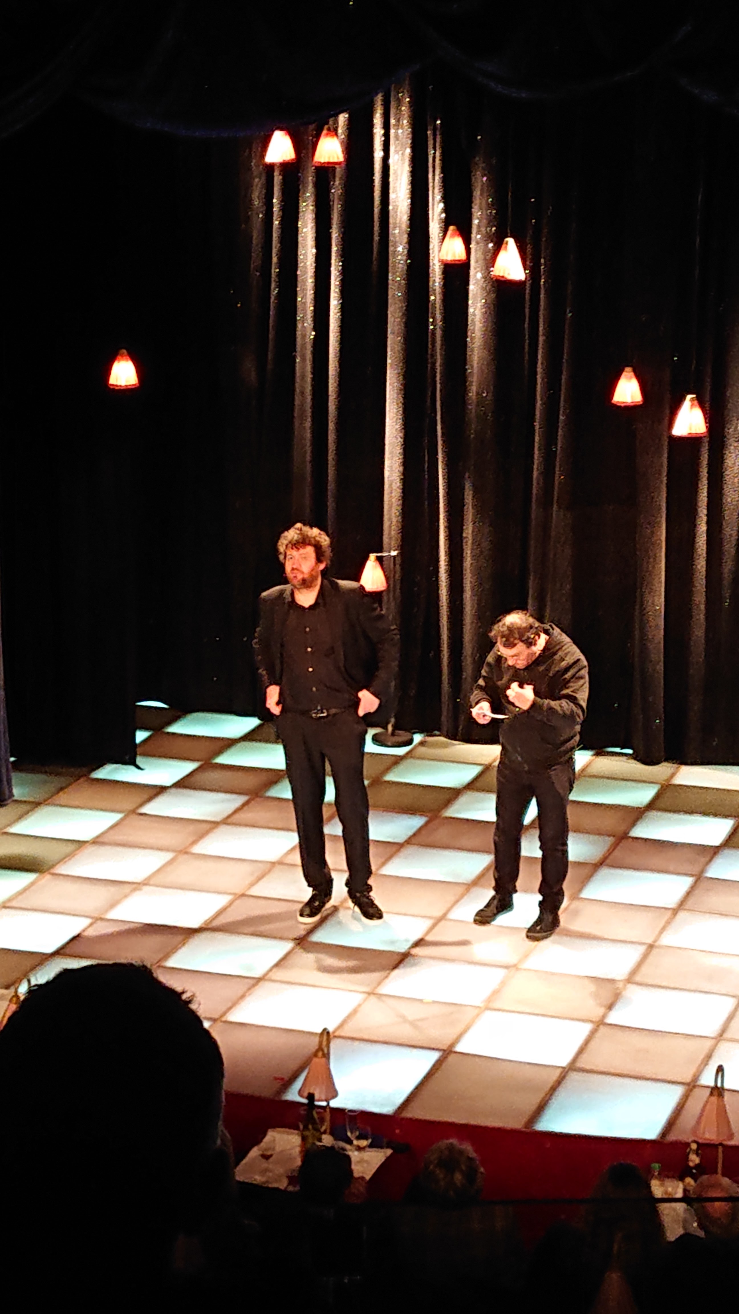 Posté le 13/02/2019 à 22:43"Venus voir le. Spectacle de Redouane Harjane, nous avons été agréablement surpris de découvrir un théâtre avec tables ! Tables pour 2, 4 ou plus, chacune avec sa petite lampe ! On va chercher ses boissons au bar et on sirote pendant le show... Dans un cadre très chaleureux... Tres bon moment!"