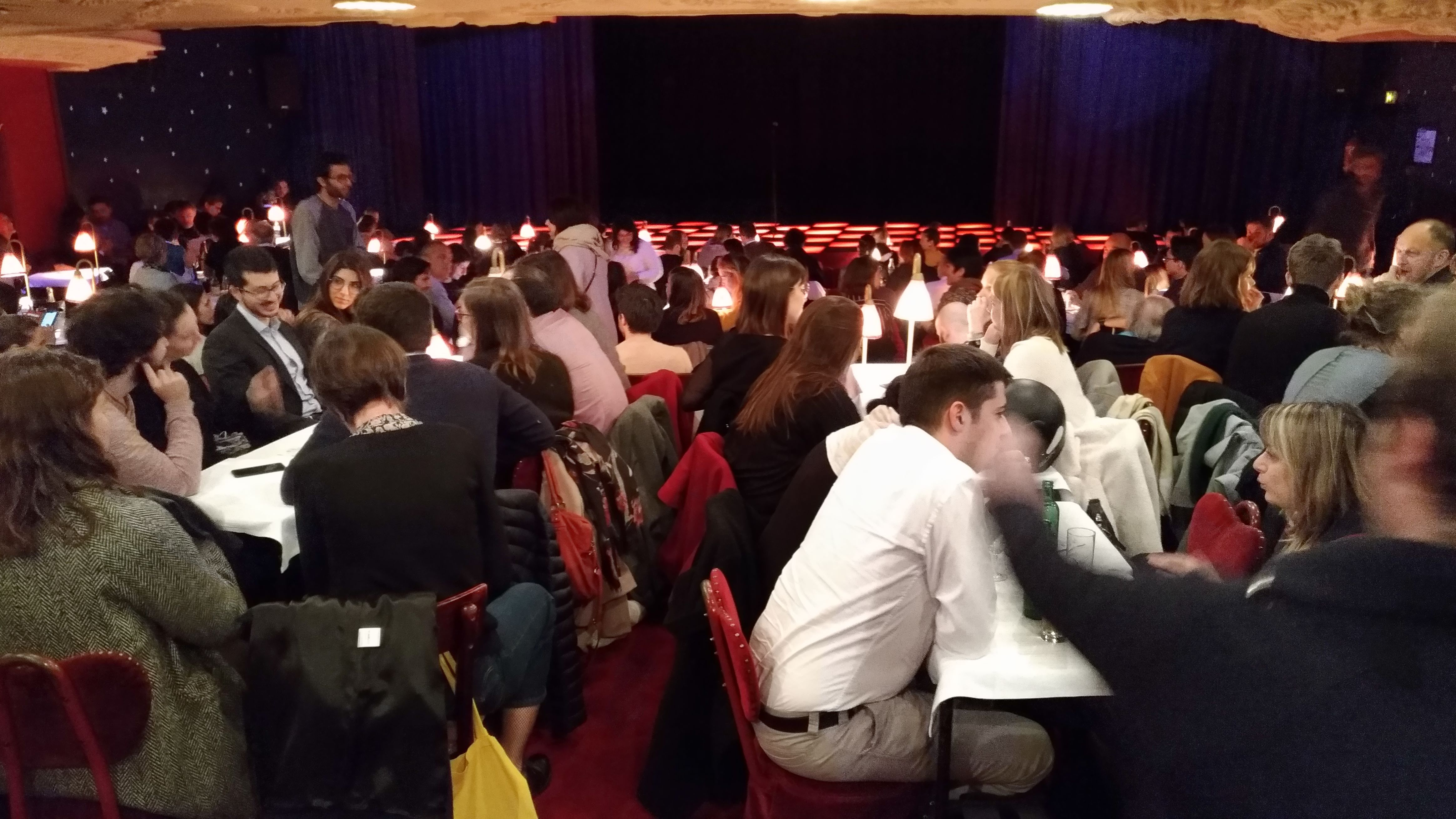 Venue pour le spectacle d'Olivier de Benoist... Salle très intimiste, l'esprit cabaret y est bien présent, j'adore ! Peut être juste prévoir un tout petit peu plus de place entre 2 chaises en cas de spectacle...