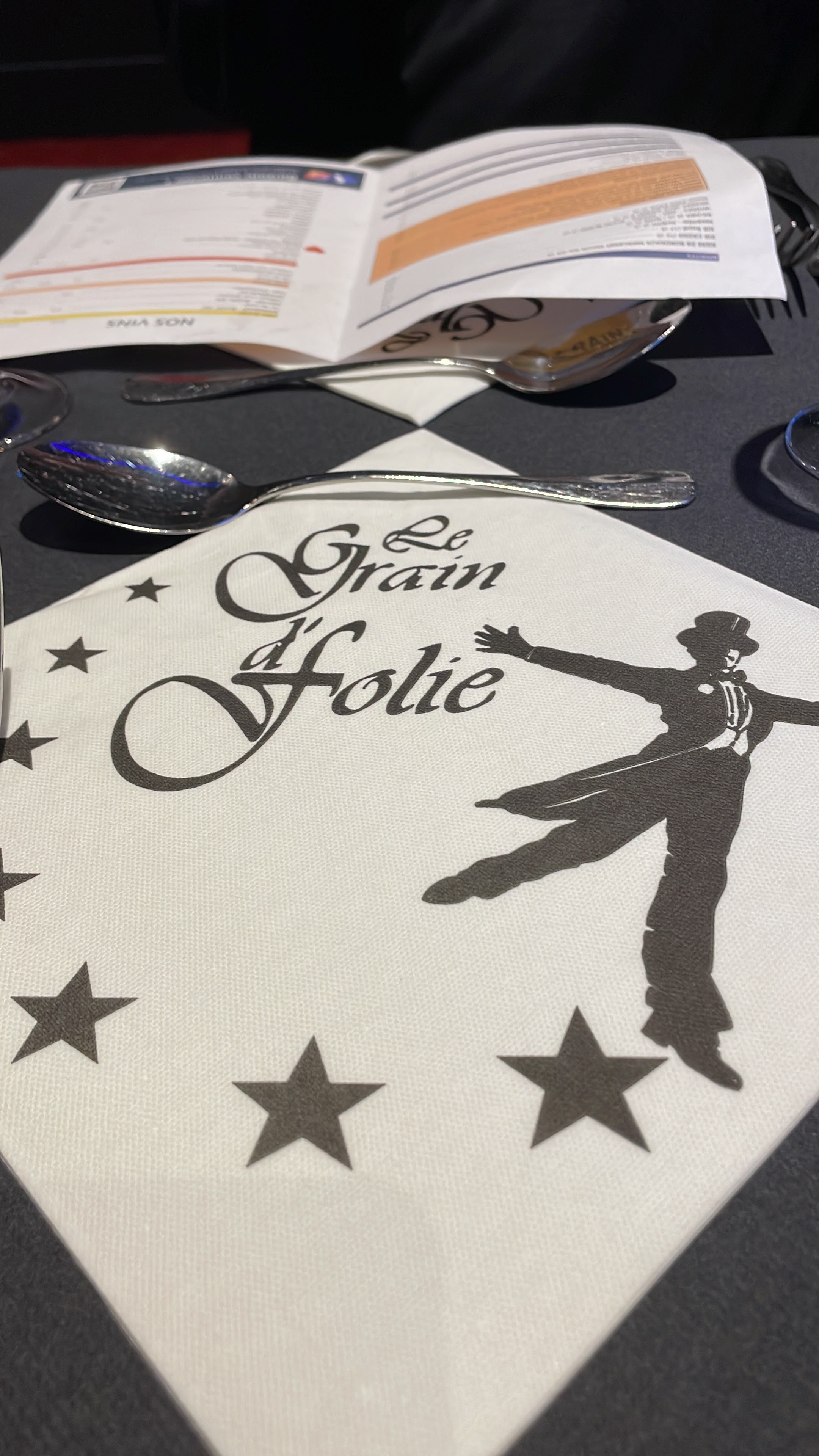 Posté le 07/04/2022 à 08:13"Le grain d’folie est un super cabaret. L’accueil est au top. Nous avons très bien mangé et le spectacle était absolument génial. Allez y ! Super soirée assurée ! Mise à jour 09/2022 : Nous y sommes retournés pour la nouvelle revue et c’est encore mieux qu’avant ! Bravo à l’équipe ! On sent que vous vous investissez pour notre plaisir ! Continuez !"
