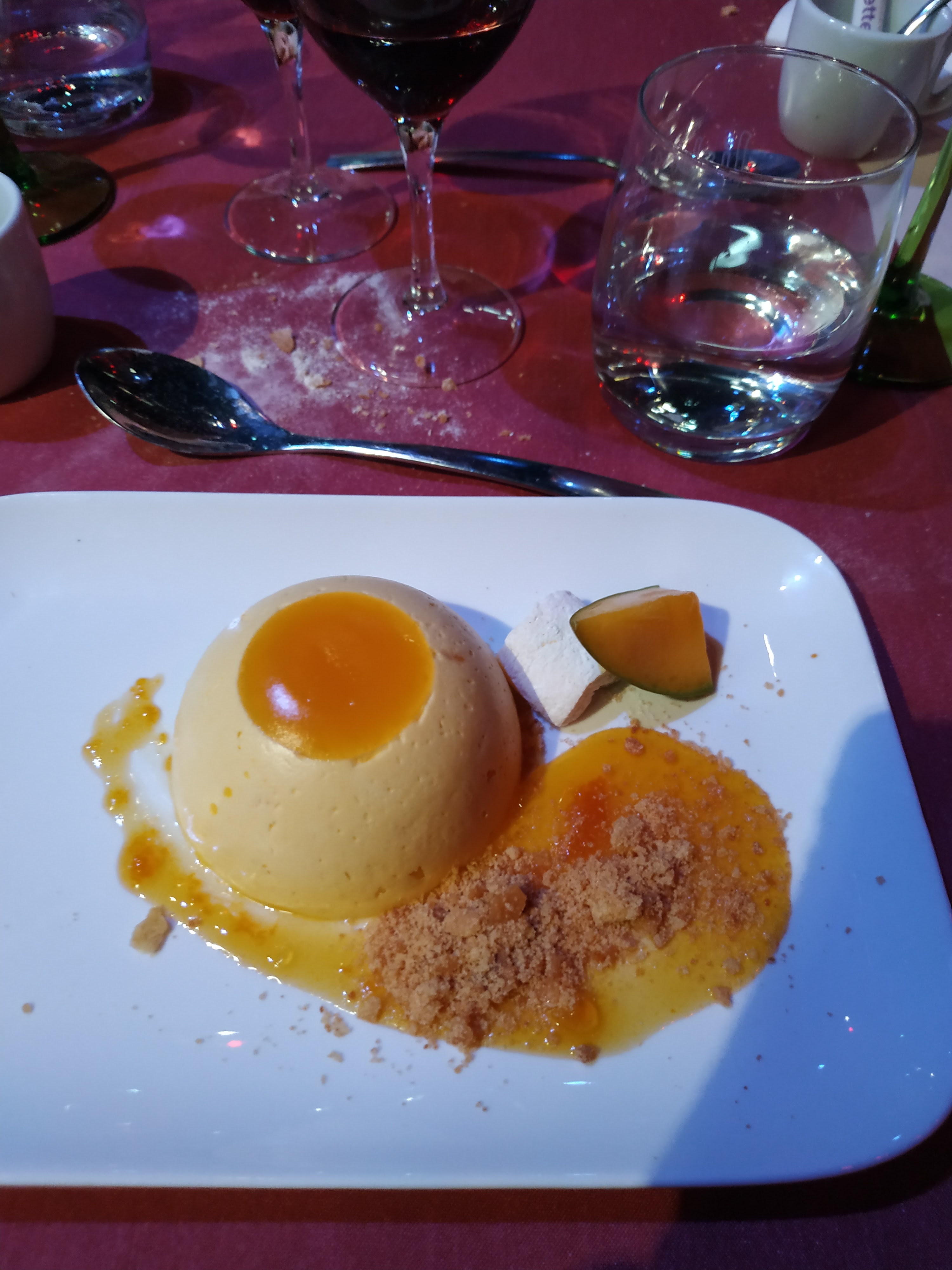 Posté le 20/02/2020 à 16:35"Très déçu par le menu ! Entrée trop froide ( sortie du congélateur) ! La viande du plat principale trop grasse ! Le risotto était insipide ! Présentation pas terrible. Le spectacle des prestataires extérieurs sont très pro. Le spectacle des danseurs est bien mais manque d'harmonie pour le choix des filles. Le service bof, je commande un verre de Bourgogne et je reçois un verre de Bordeau ! Des verres ébréchés et coupants !! Enfin beaucoup trop cher vis à vis des prestations ! Il faut réagir sinon ça ne va pas durer !"