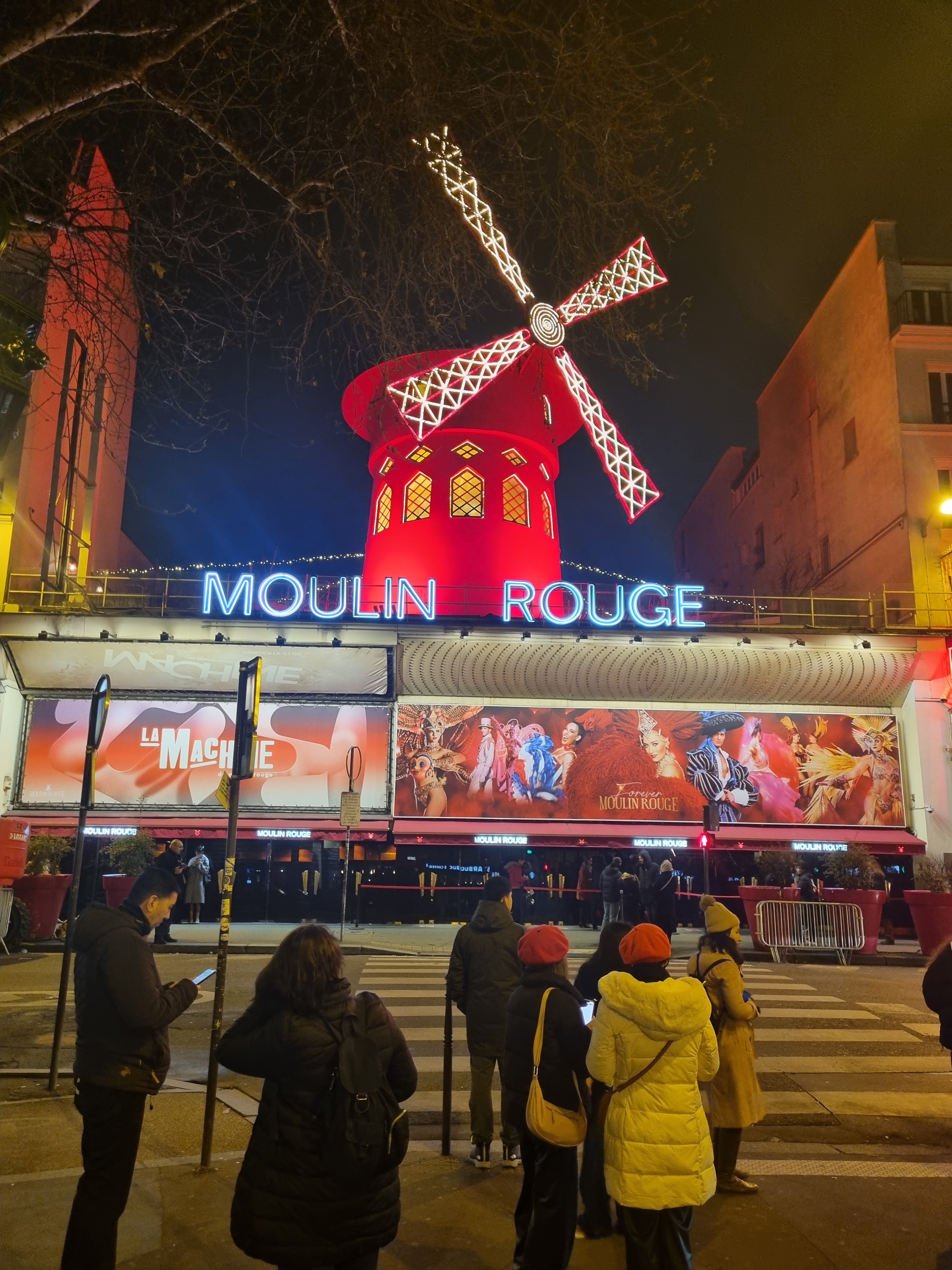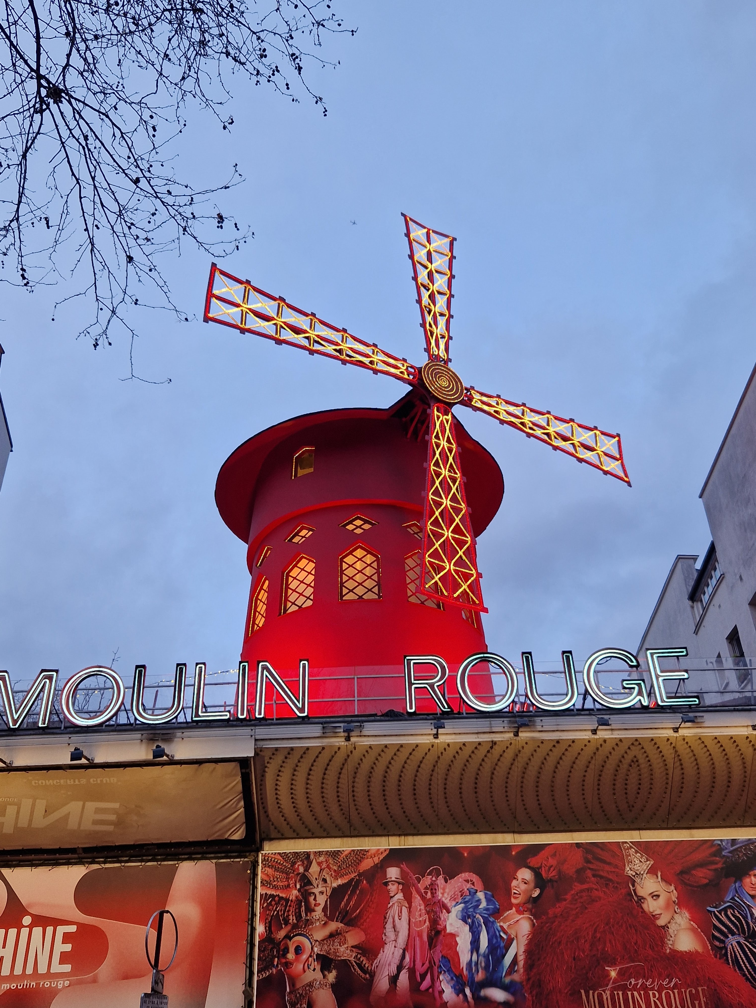 Le moulin rouge, cabaret mythique. Situé dans le 18ieme arrondissement de Paris, métro blanche. Tout rouge et facile a reconnaître avec son moulin. Ce lieu attire beaucoup de touristes surtout des étrangers. Il faut réserver à l'avance car c'est toujours pleins. La revue est splendide de belles filles de belles musiques, très professionnel. La nourriture est correcte bien que ce ne soit pas le principale.